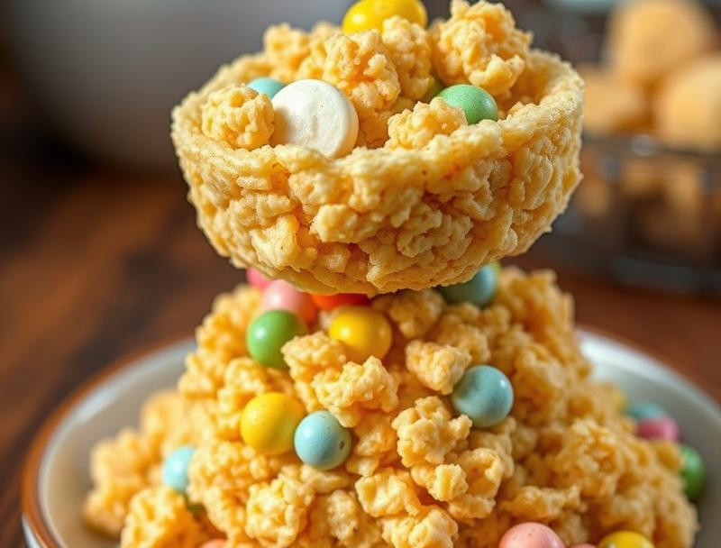 Delicate Easter Nests of Rice Krispie Delight
