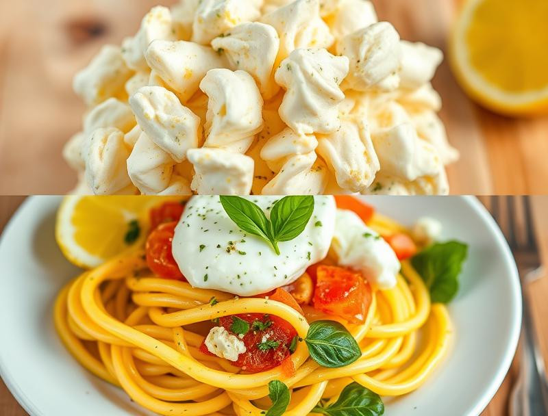 A refreshing pasta salad that combines the creaminess of burrata with zesty lemon, fresh herbs, and seasonal vegetables, perfect for summer gatherings.